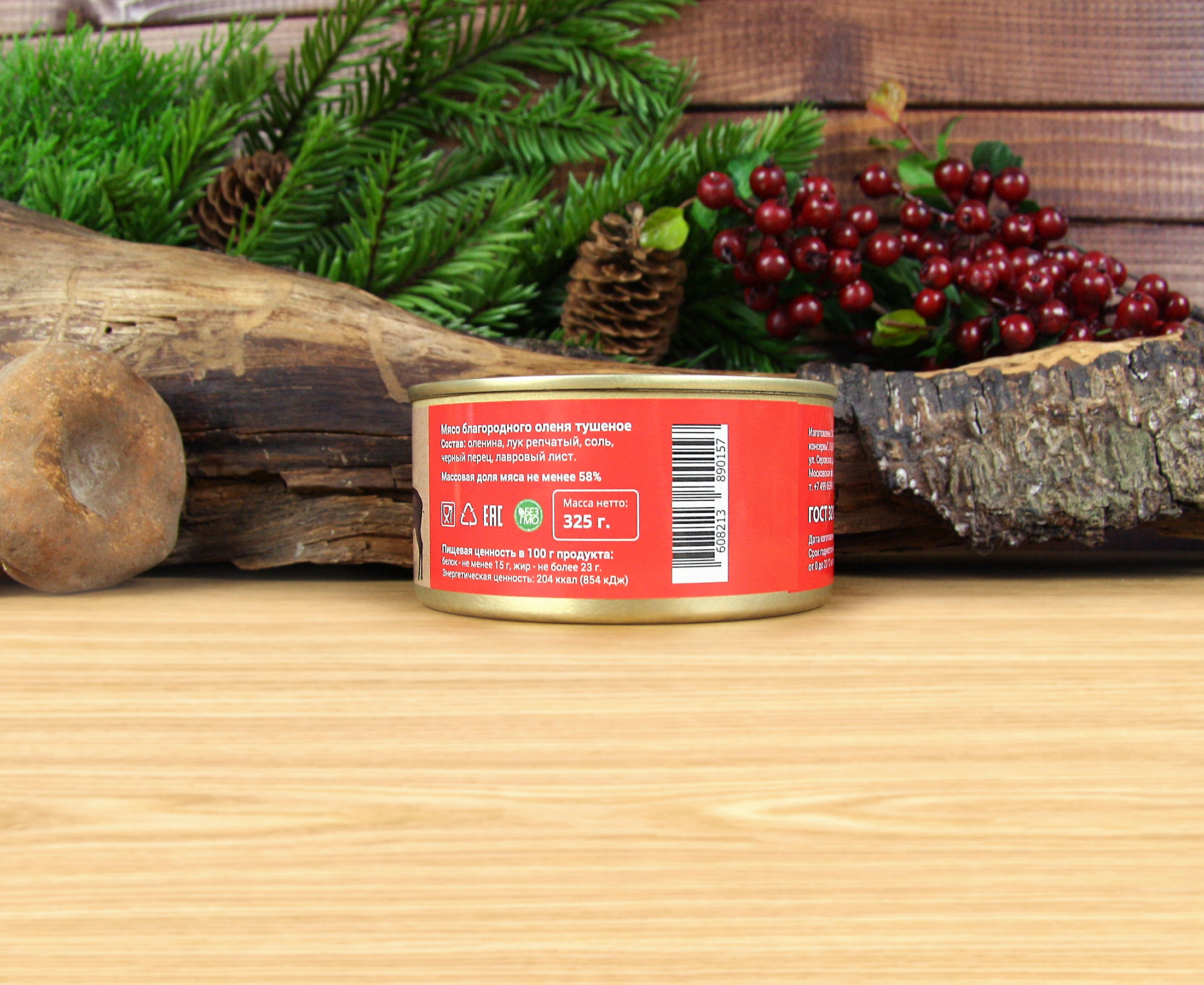 | Состав: | оленина, лук репчатый, соль, черный перец, лавровый лист. |