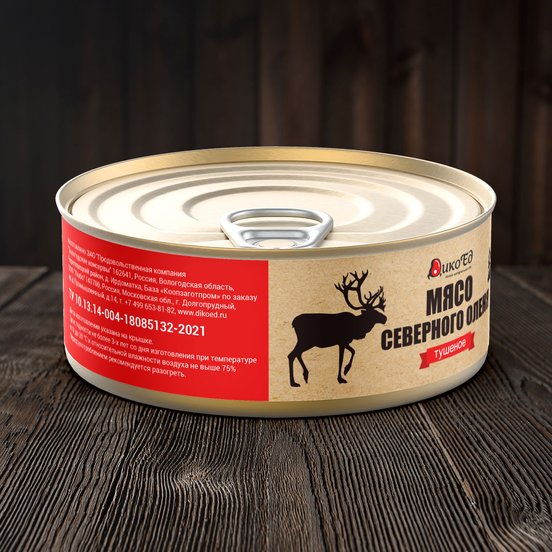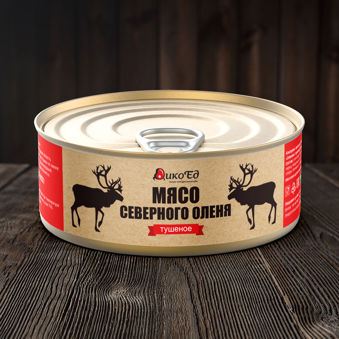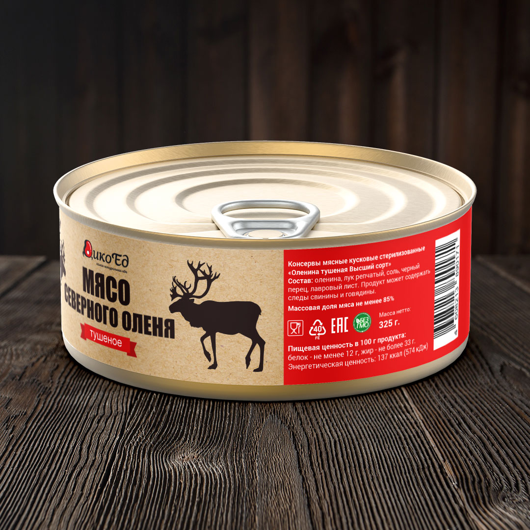 Дичь, Олень северный, Деликатесы из северного оленя, Бакалея, Оленина, Мясные консервы, Тушеное мясо, Доставка Почтой России.