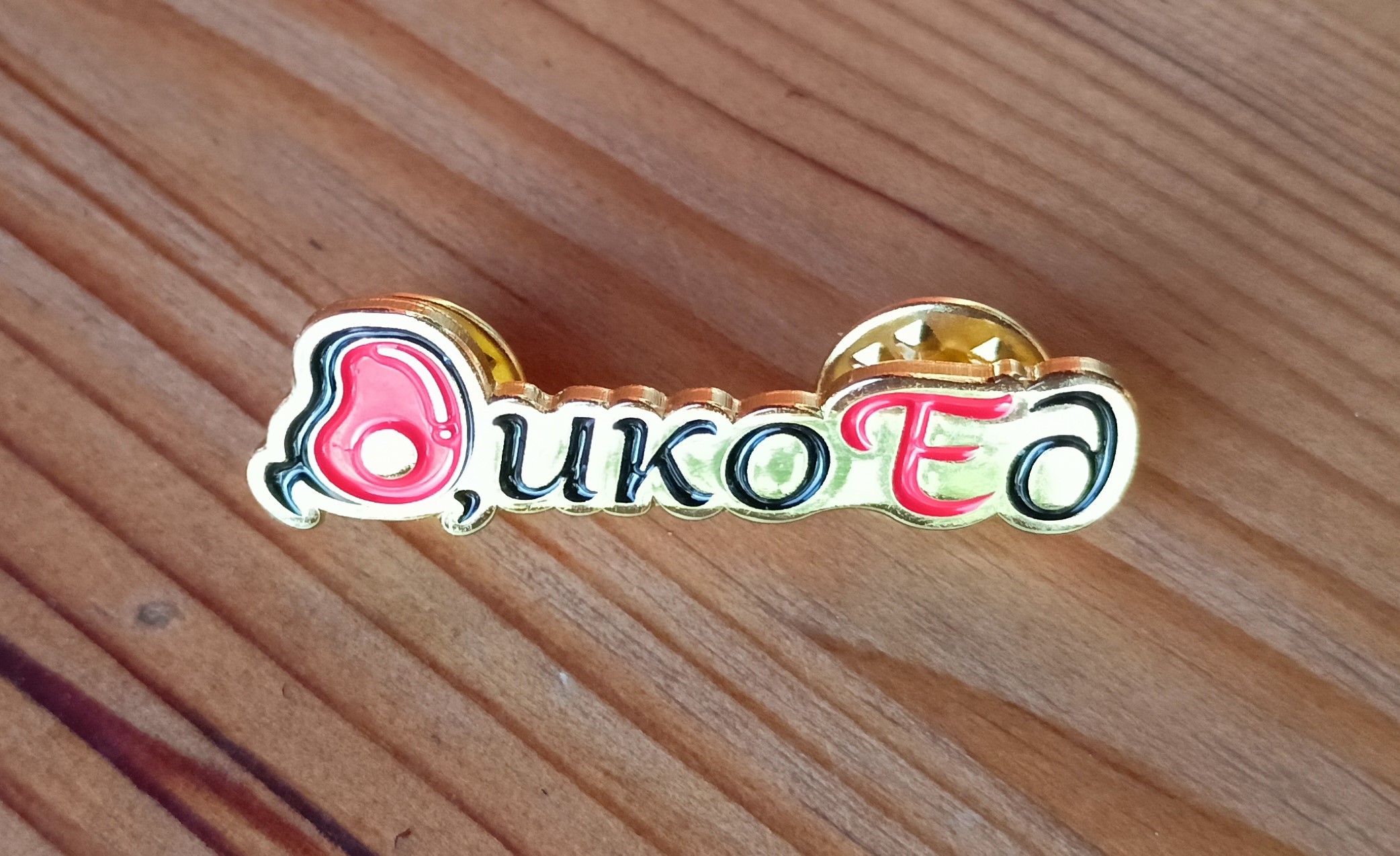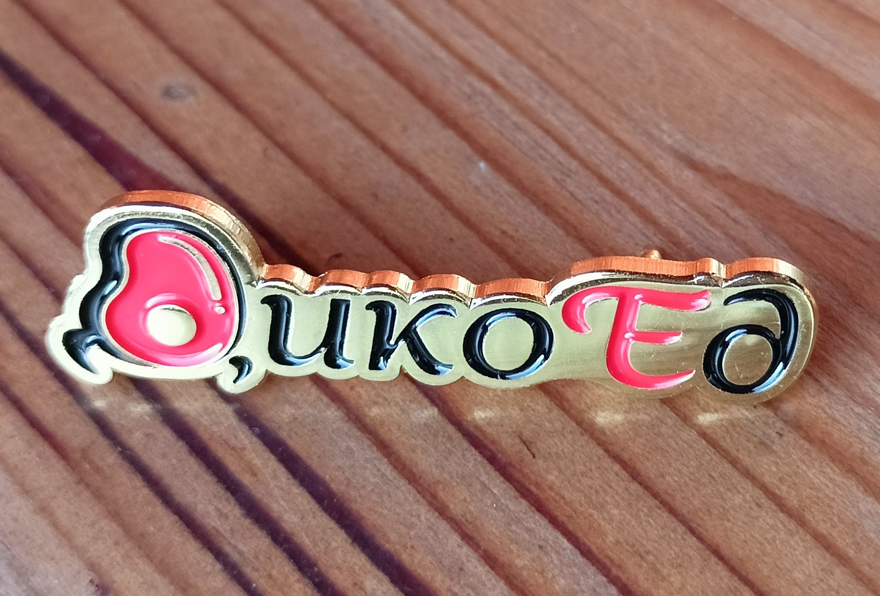 Фирменный значок "ДикоЕд" металлический размером 35 миллиметров на двух цангах.